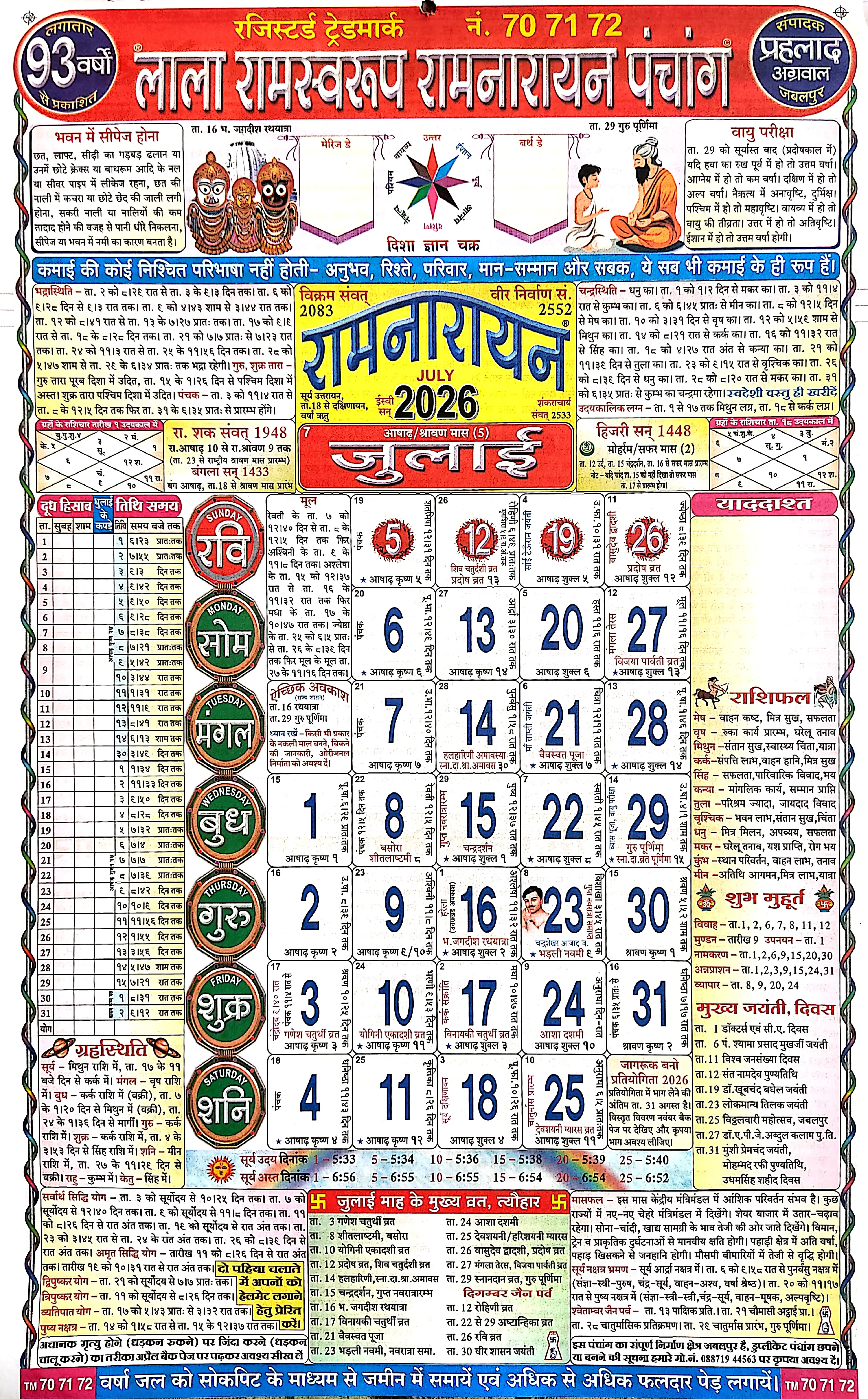 लाला रामस्वरूप पंचांग जुलाई 2026 हमें यह संदेश देता है कि जीवन में भागदौड़ के साथ-साथ ठहराव (चातुर्मास) भी जरूरी है। जगन्नाथ जी की कृपा और गुरु की शरण में जाने का यह महीना हमारी आध्यात्मिक यात्रा का एक अहम पड़ाव है।